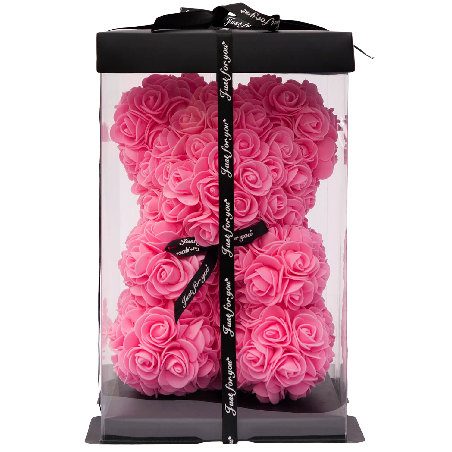 Pink bear of handmade roses, size 40 centimetres.