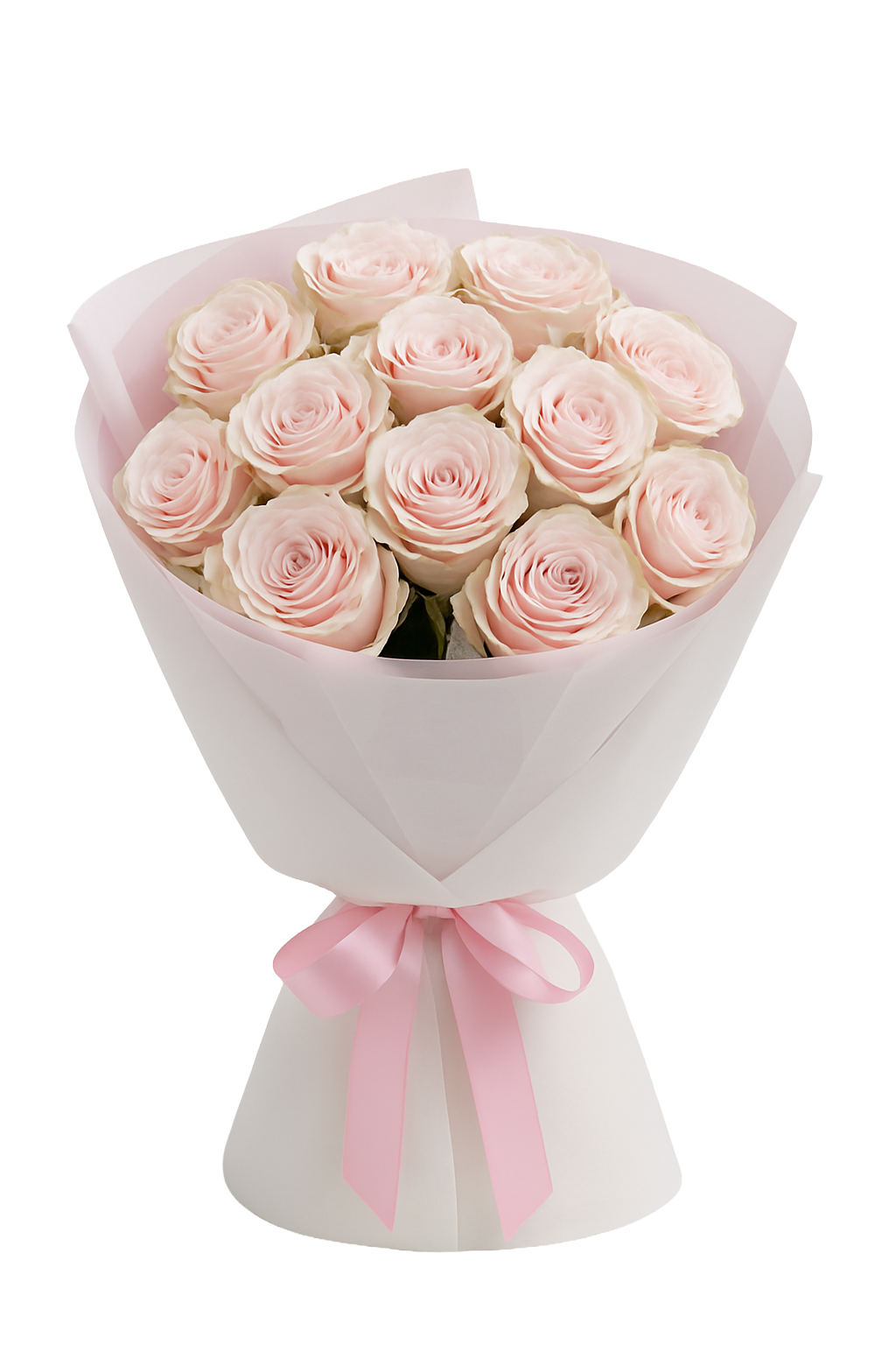 Soft, delicate, and effortlessly charming – this bouquet of pale blush roses wrapped in pure white is like a gentle hug in flower form. Perfect for saying “I’m thinking of you” or just brightening someone’s day with a little sweetness.